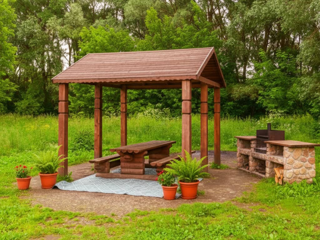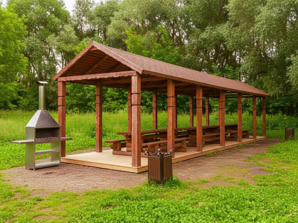 - Организованное место для пикника у пруда (мангал, уголь, решетка).